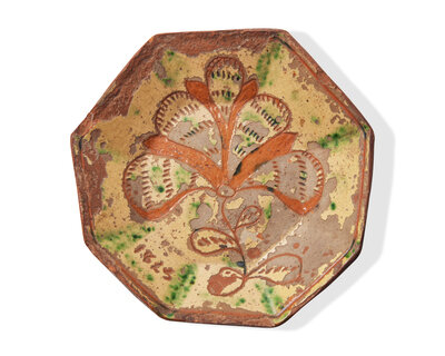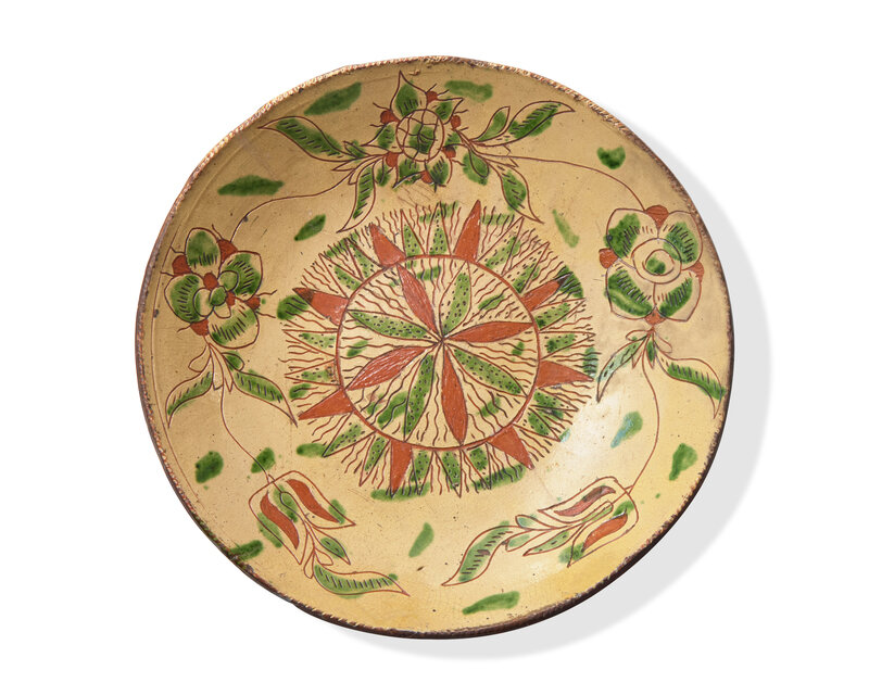 Two Glazed and Sgraffito- Decorated Redware Dishes, One Attributed to