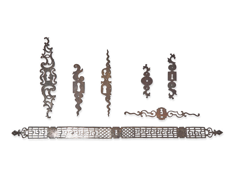 A Collection of Seven Wrought Iron Escutcheons, French, 18th and 19th Century
