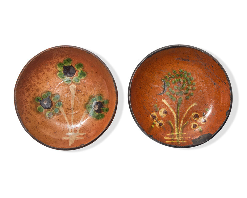 Two Small Glazed and Floral Slip-Decorated Redware Plates, Pennsylvania, 19th Century