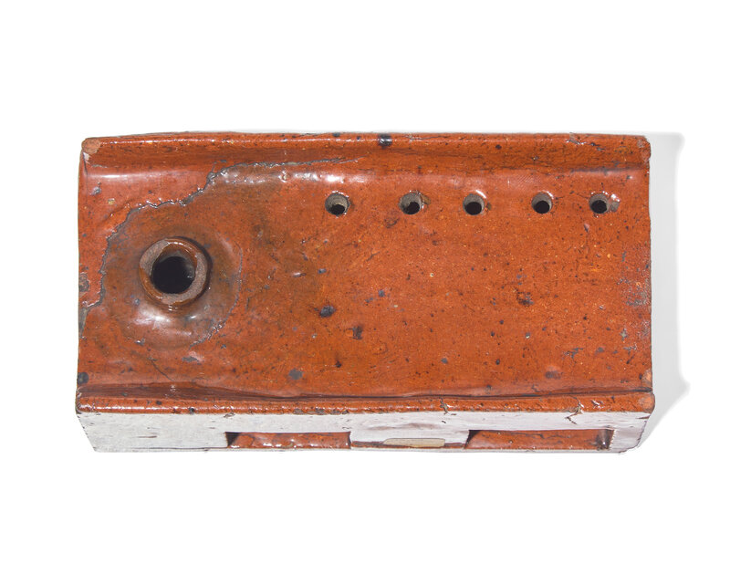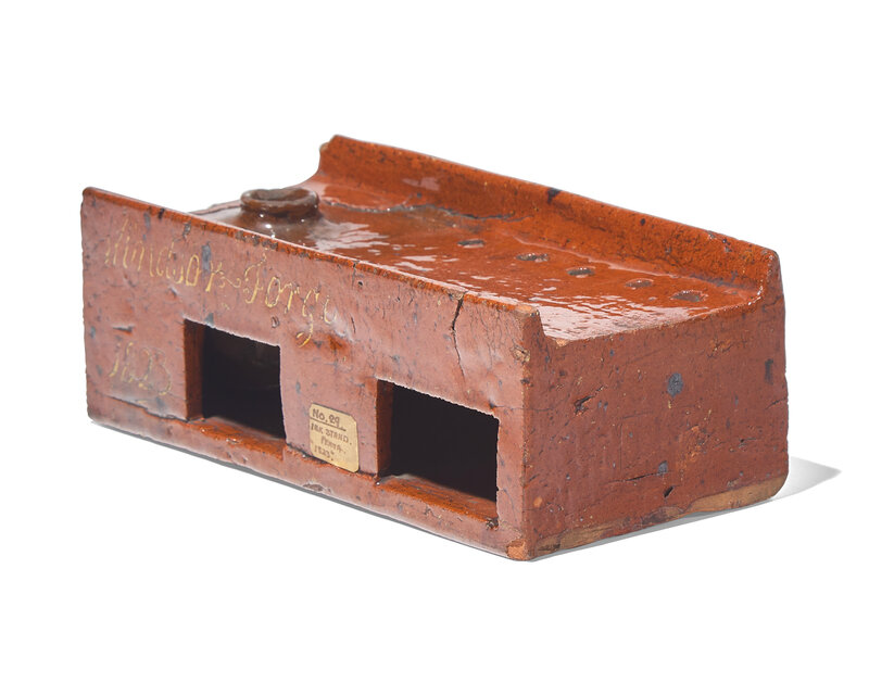 A Glazed Redware Inkstand, Inscribed, "Windsor Forge" and Dated "1823," Pennsylvania