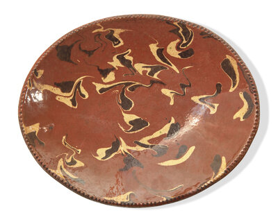 An Oval Redware Bread Dish with Marbleized Slip, New England, 19th Century