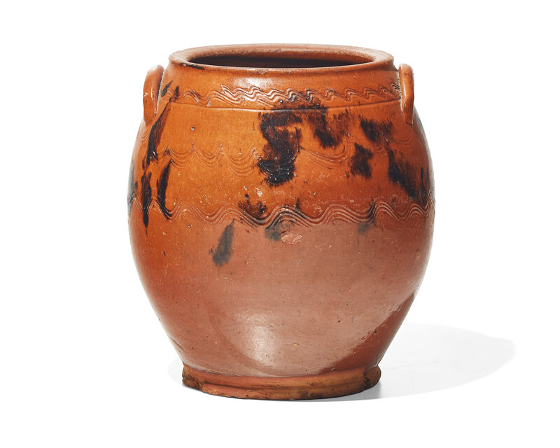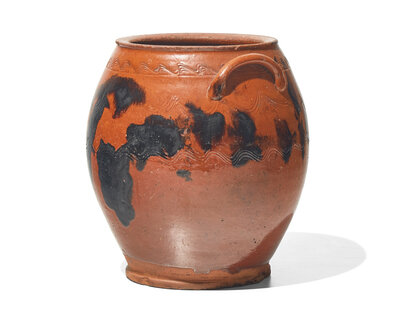An Incised, Glazed, and Manganese-Splashed Redware Crock, 19th Century