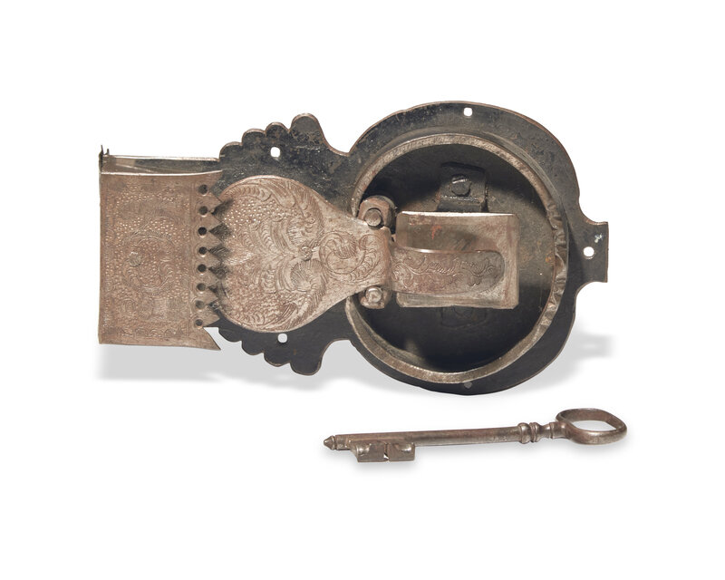 An Engraved Iron Lock Plate and Key, German, Probably 18th Century