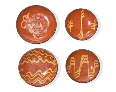 Four Small Slip-Decorated Redware plates, Pennsylvania, 19th Century