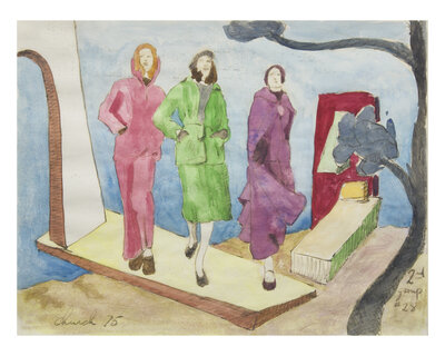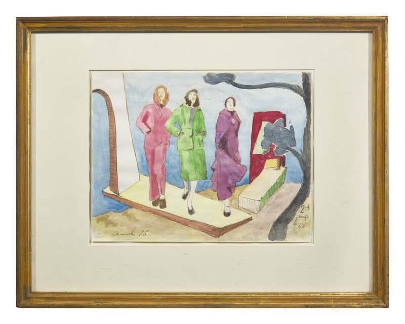Women Walking: signed and dated 'Church 75' bottom left; also inscribed '2nd group #28' bottom right, watercolor and pencil on paper, 8 3/8 x 11 in. (21.3 x 27.9cm)