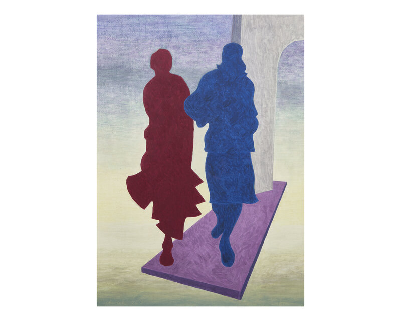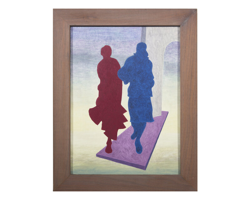 Red and Blue Figures: signed (incised) and dated 'Church/76.5' bottom left, oil on panel, sight size: 17 1/2 x 13 in. (44.5 x 33cm)