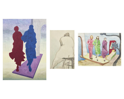 Red and Blue Figures; together with Women Walking and Seated Nude (Three Works)