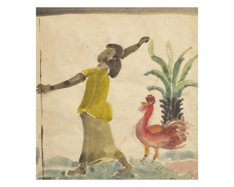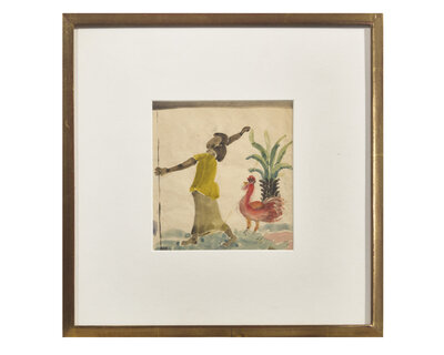 Numbered and titled '18 - Girl with Rooster' verso