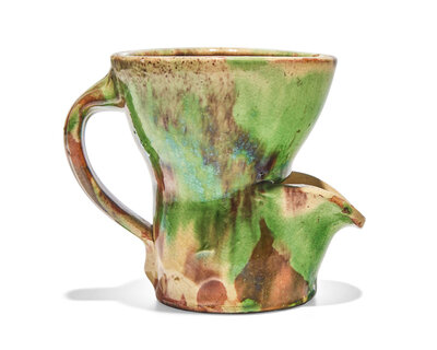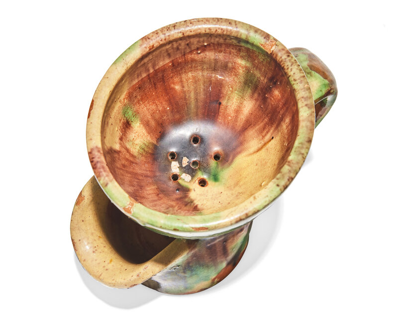 A Shenandoah Valley Multi-Glazed Redware Shaving Mug, Circa 1890