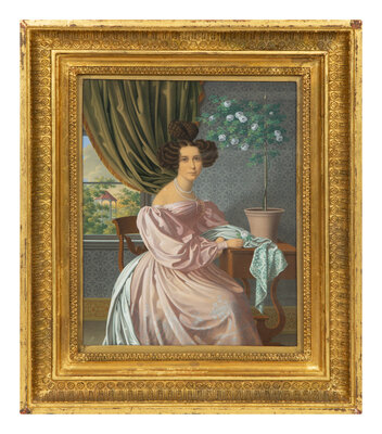 Portrait of a Lady in a Pink Dress, Seated by a Window, 1831