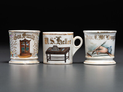 Three Porcelain Occupational Shaving Mugs