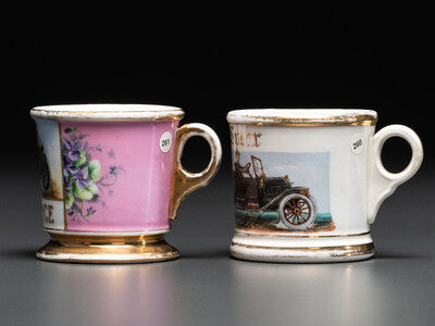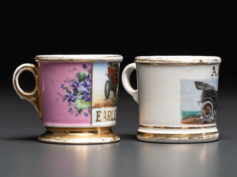Two Open Touring Car Porcelain Occupational Shaving Mugs
