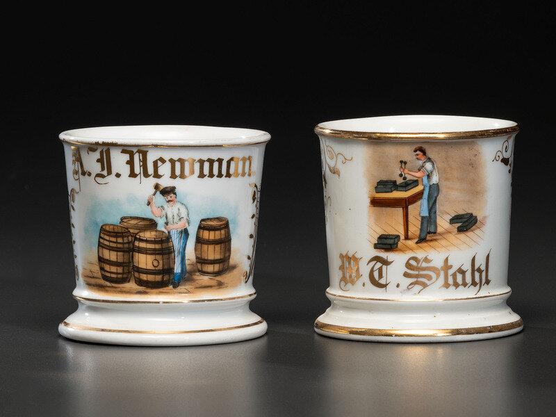 Two Tradesman's Porcelain Occupational Shaving Mugs