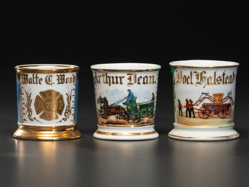 Three Firefighter's Porcelain Occupational Shaving Mugs