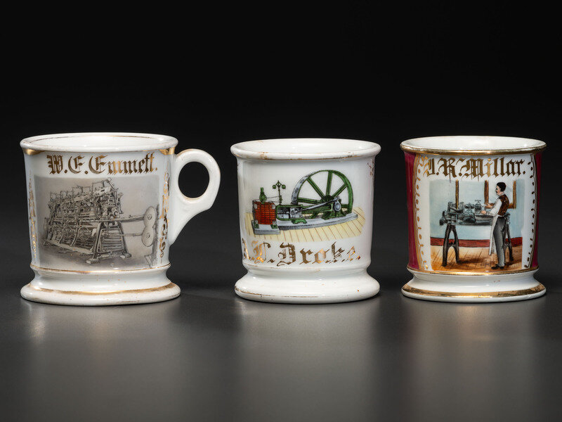 Three Machinist's Porcelain Occupational Shaving Mugs