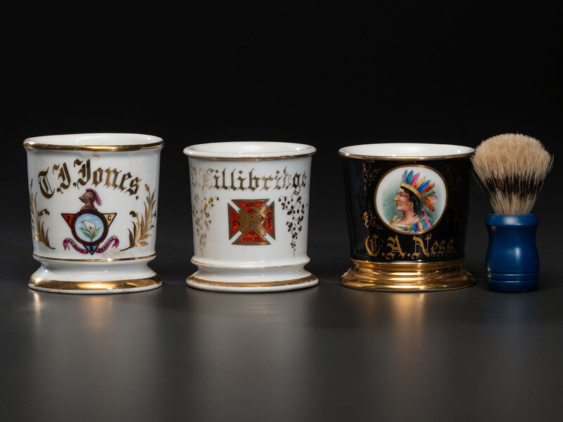 Three Fraternal Porcelain Shaving Mugs