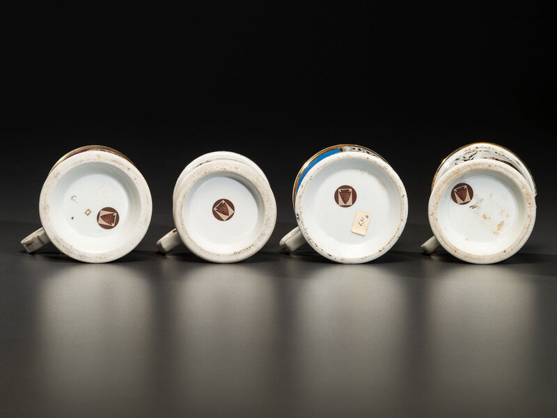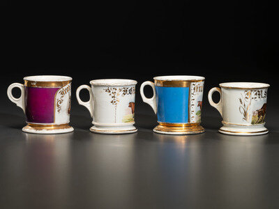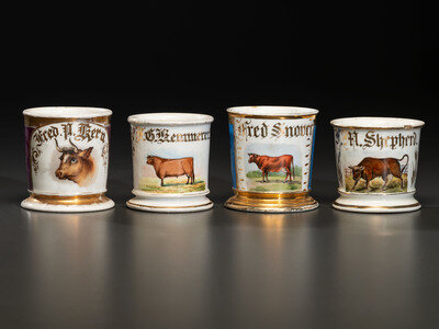 Four Porcelain Occupational Shaving Mugs of Bovine Interest