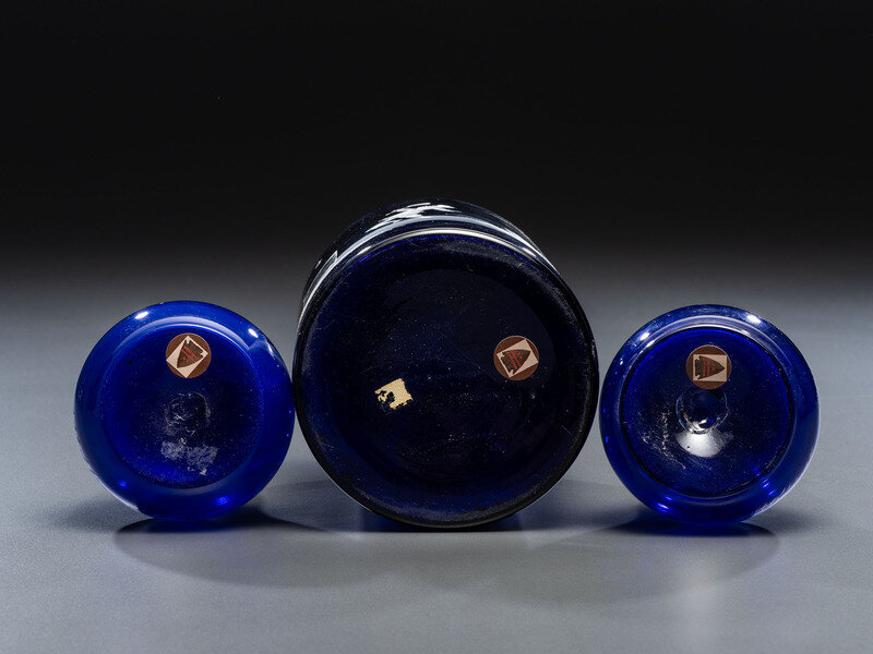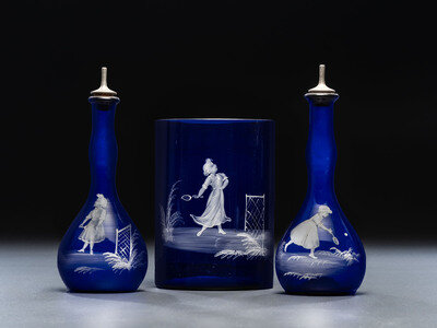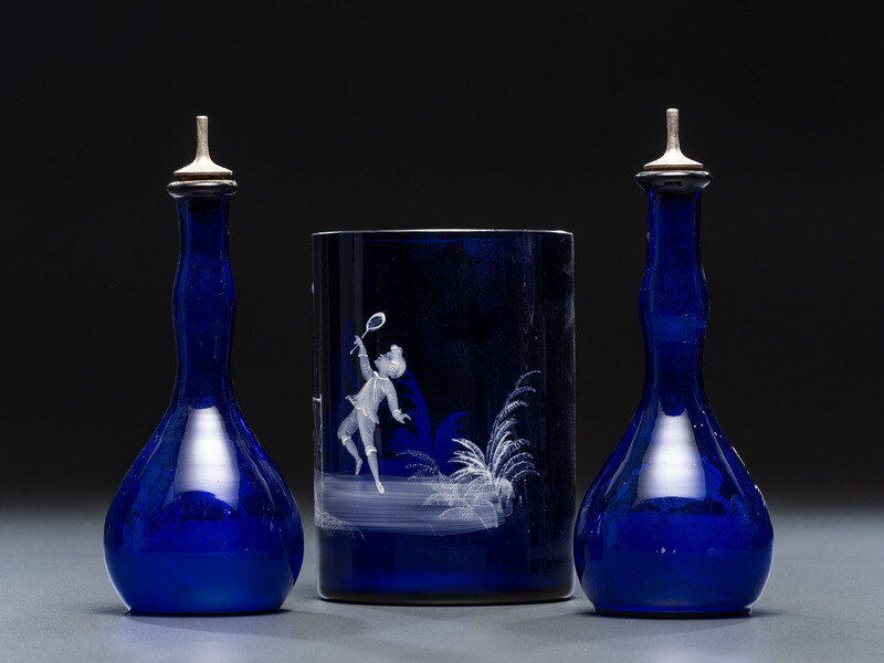 Three 'Mary Gregory' Cobalt Glass Barber Items