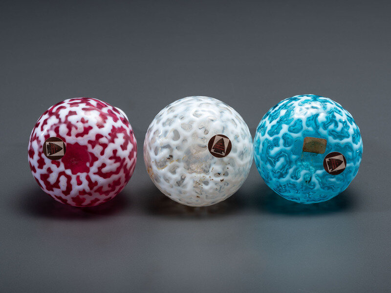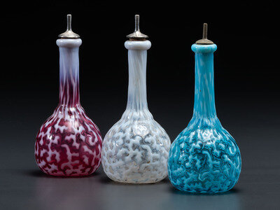 Three Coral Opalescent Glass Barber Bottles
