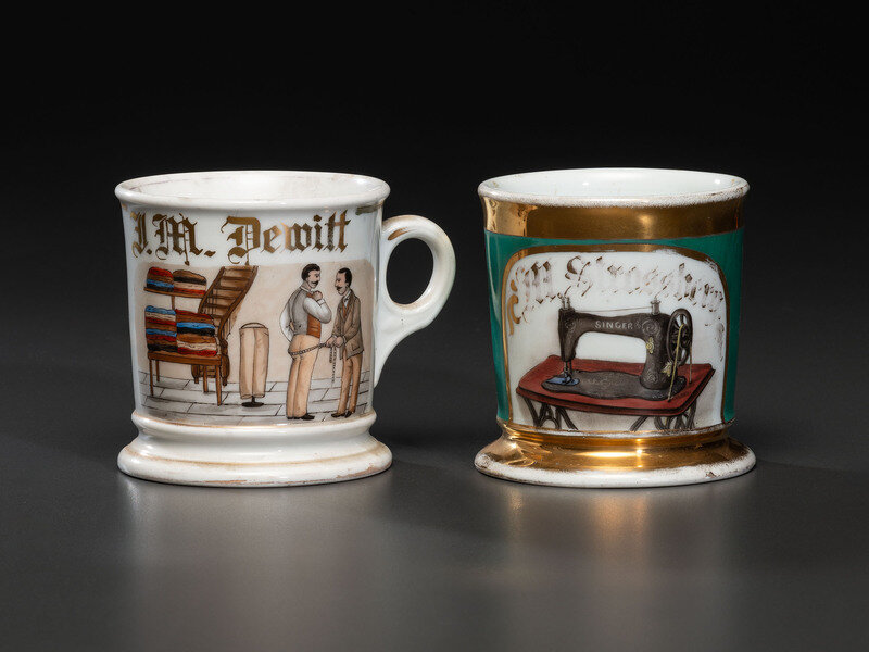 Two Tailor's Occupational Shaving Mugs