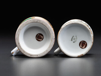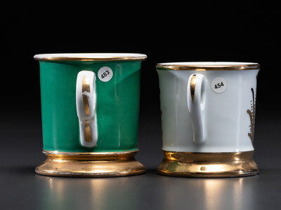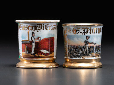 Two Laborer's Porcelain Occupational Shaving Mugs