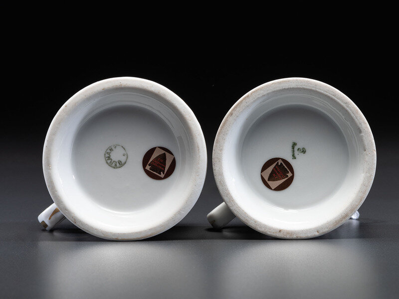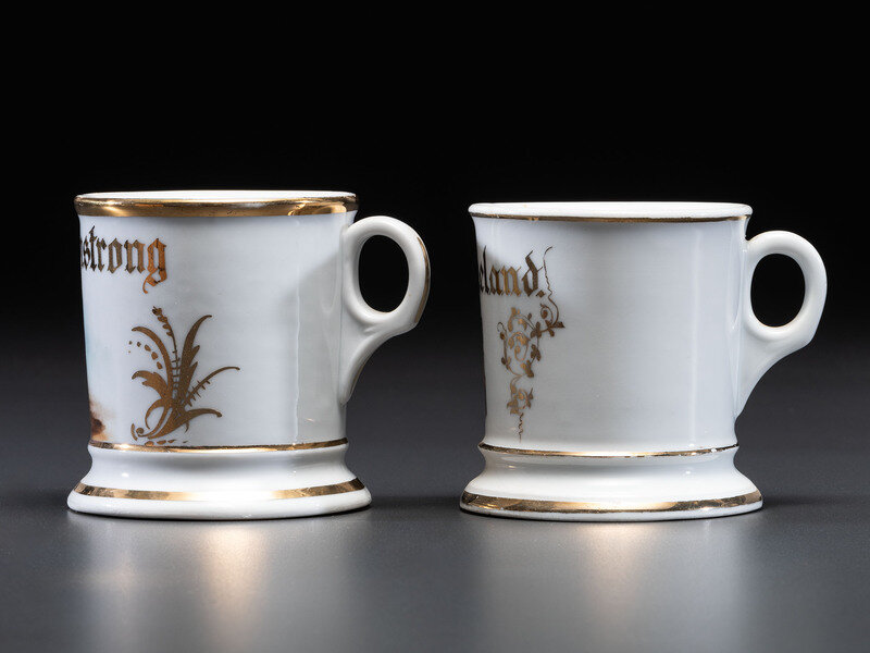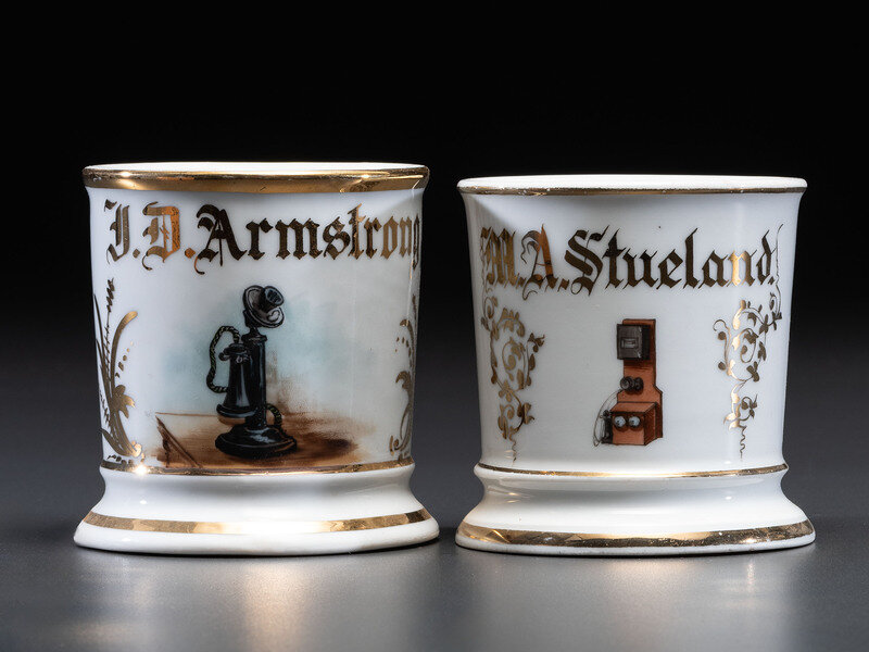 Two Telephone Operator or Salesmen's Porcelain Occupational Shaving Mugs