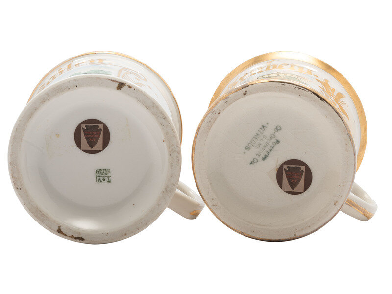 including a chauffeur's mug identified Louis Gruberg in gilt lettering, and an open touring car mug identified W.B. Bailey.