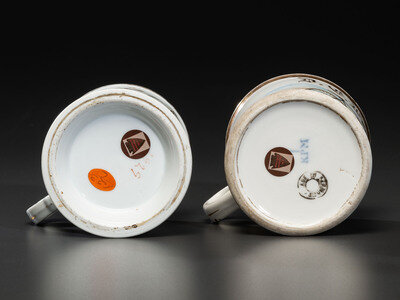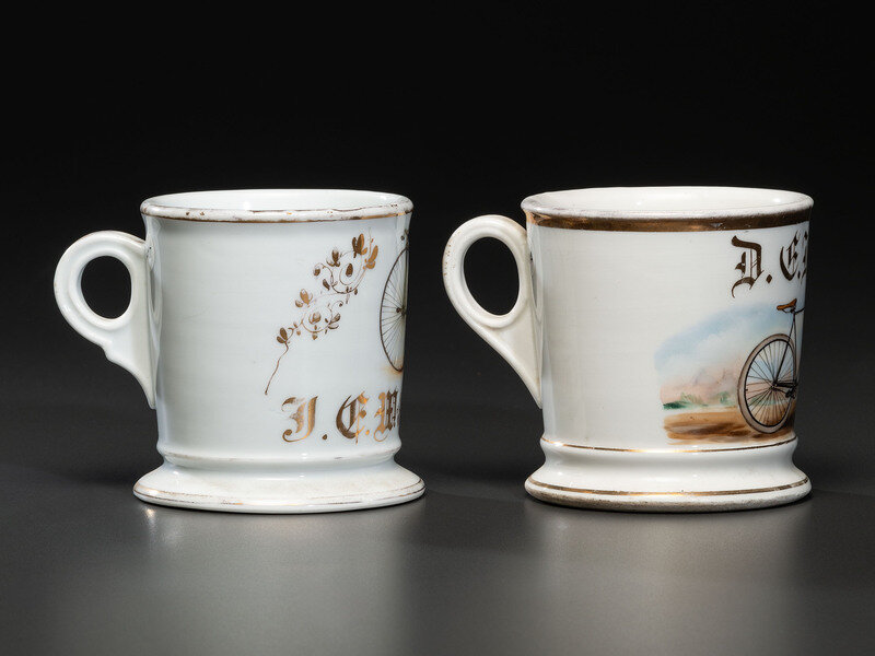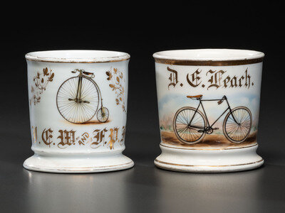 Two Cyclist's Porcelain Shaving Mugs
