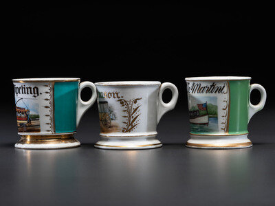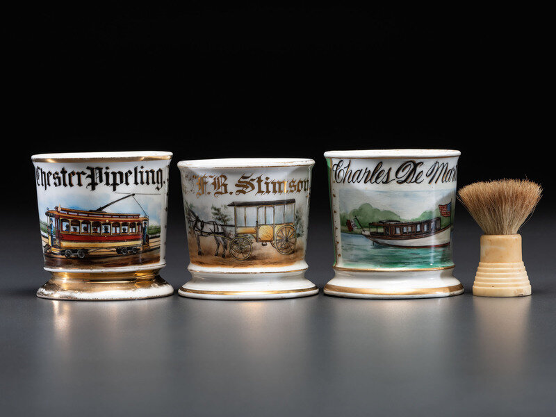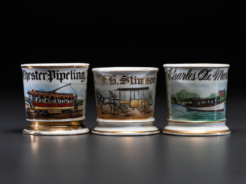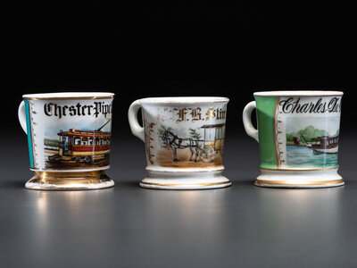 Three Transportation Related Porcelain Occupational Shaving Mugs