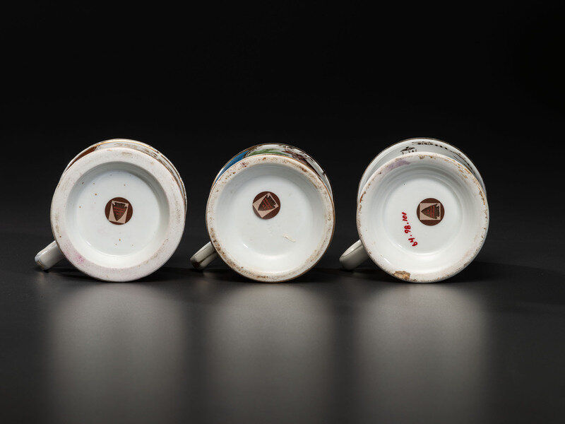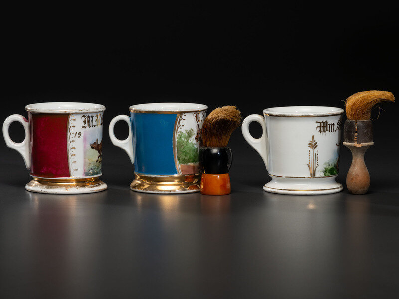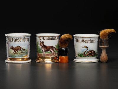 Three Porcelain Shaving Mugs with Animals