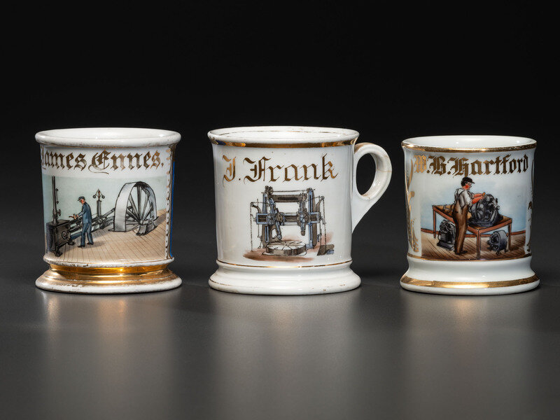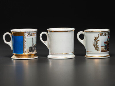 Three Machinist's Porcelain Occupational Shaving Mugs