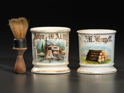 Two Loggers' Porcelain Occupational Shaving Mugs