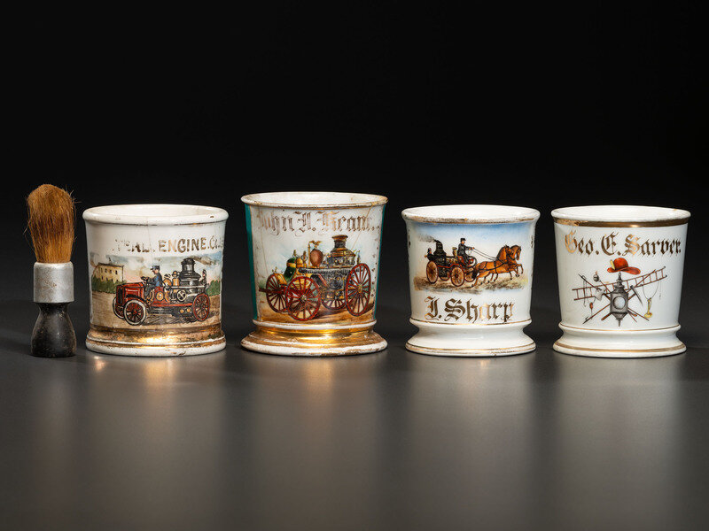 Four Firefighter's Porcelain Occupational Shaving Mugs