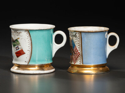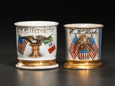 Two Patriotic Porcelain Shaving Mugs