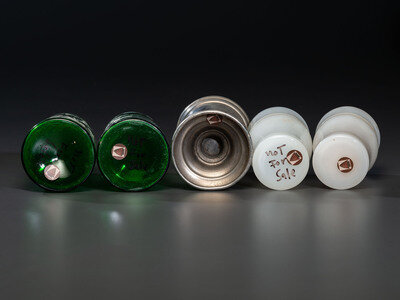 each fitted with a nickel-plated lid.