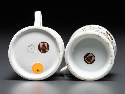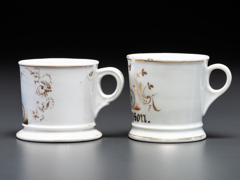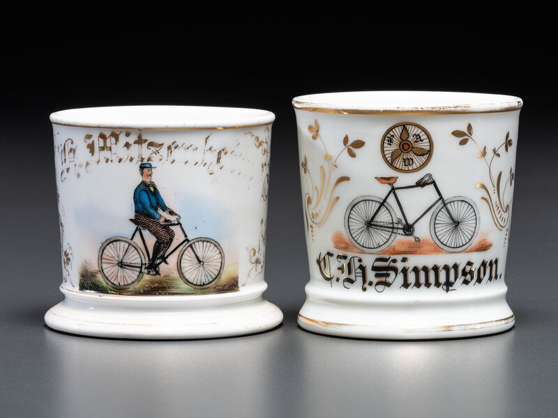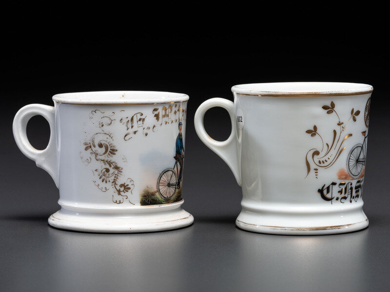 Two Cyclist's Porcelain Shaving Mugs