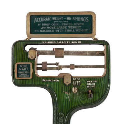 A 'Peerless' Cast Iron and Porcelain Penny Beam Scale