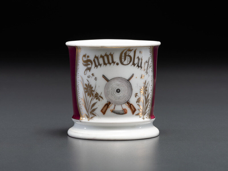 identified Sam. Gluck in gilt lettering, surmounting a target with crossed rifles and powder horn.