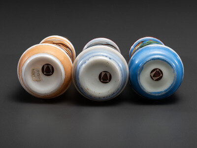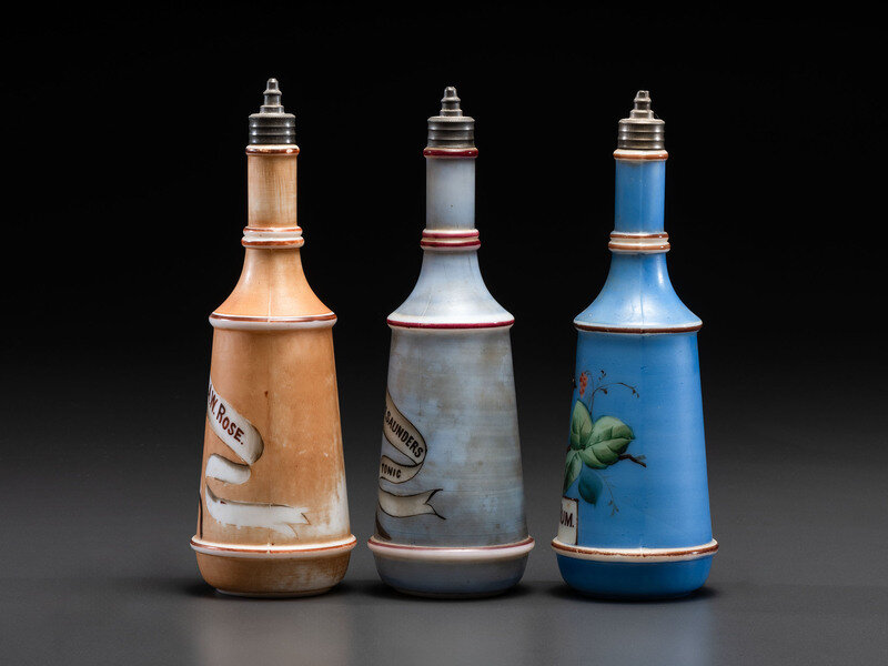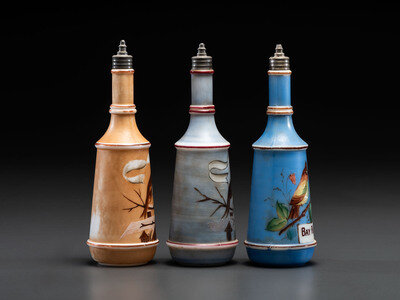 Three Paint Decorated Barber Bottles