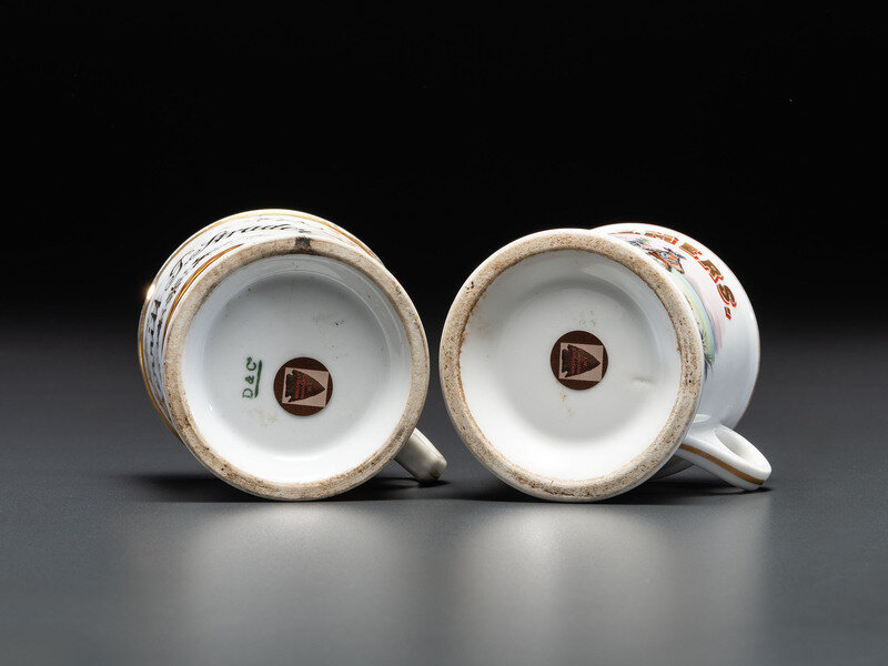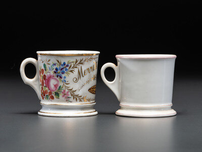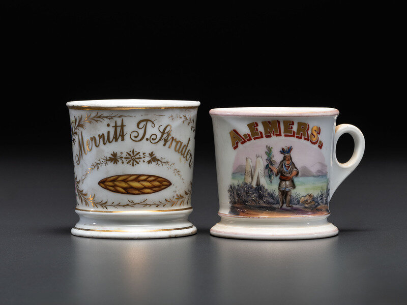 Two Tobacco Related Porcelain Occupational Shaving Mugs