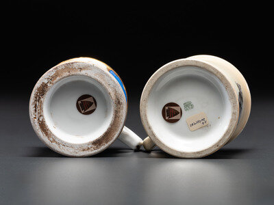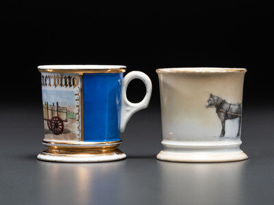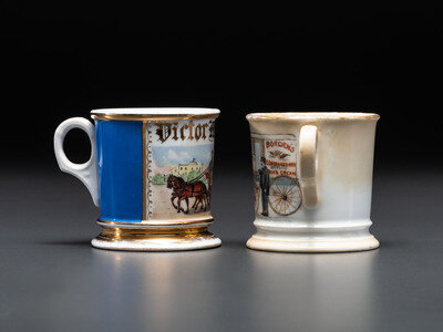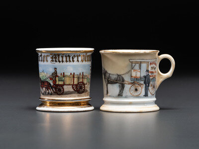 Two Horse-Drawn Delivery Wagon Porcelain Occupational Shaving Mugs