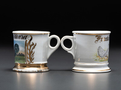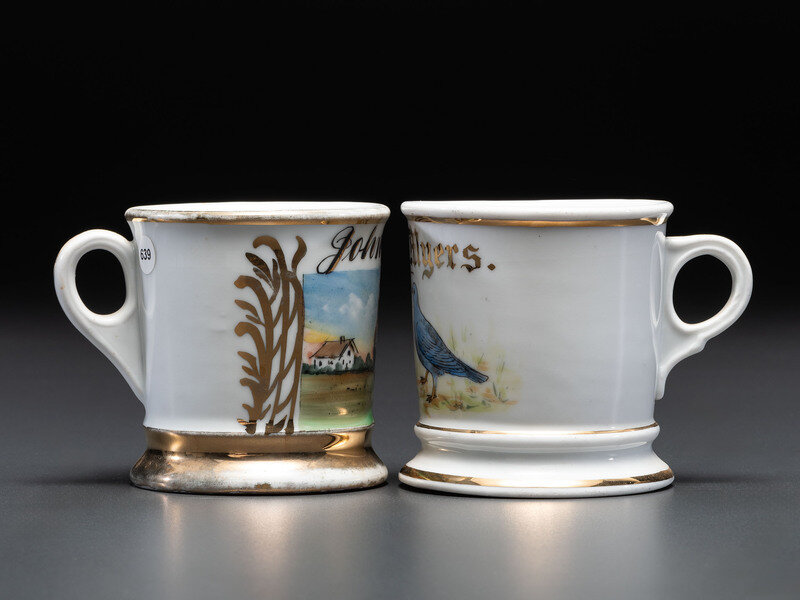Two Porcelain Occupational Shaving Mugs of Avian Interest