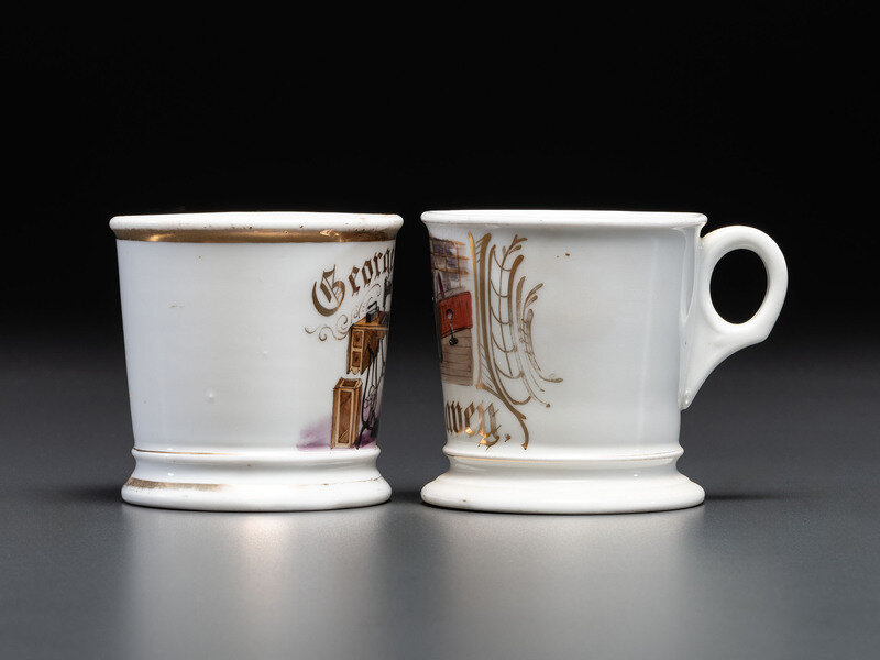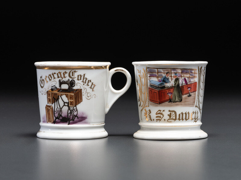 Two Tailor's Porcelain Occupational Shaving Mugs
