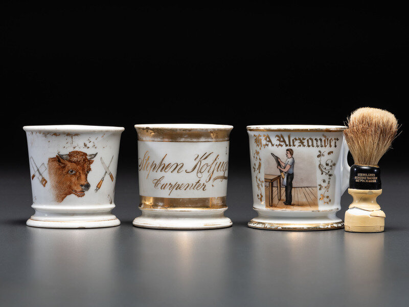 Three Tradesman's Porcelain Occupational Shaving Mugs