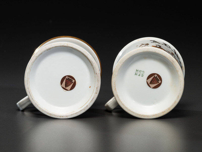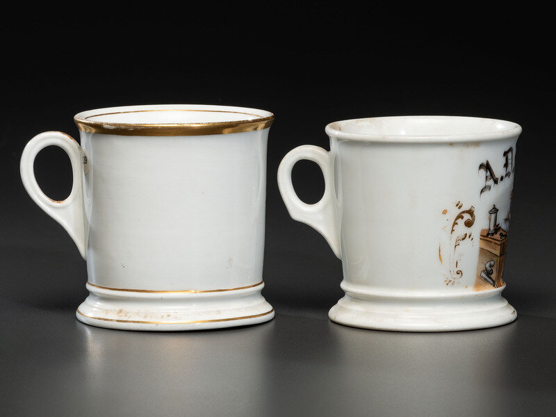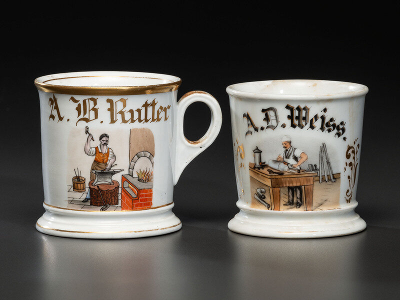 A Tinsmith and A Blacksmith's Porcelain Occupational Shaving Mugs
