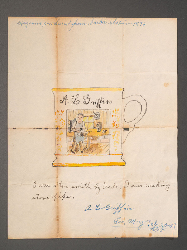 A Preparatory Sketch for a Tinsmith's Porcelain Occupational Shaving Mug Identified to A. L. Griffin