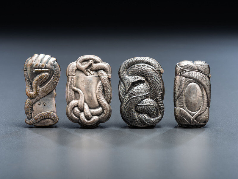 Four Silver Serpent Match Safes