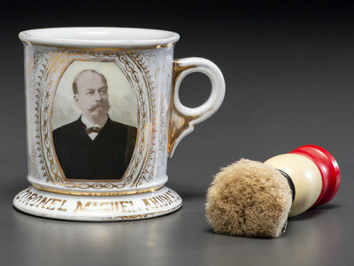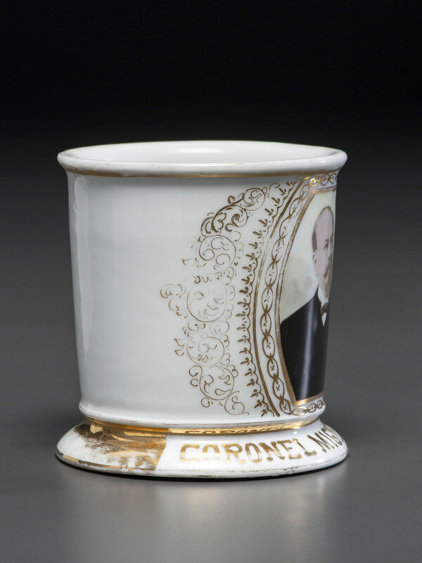 A Photographic Transfer Porcelain Shaving Mug Depicting Mexican Politician Coronel Miguel Ahumada
