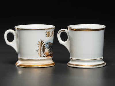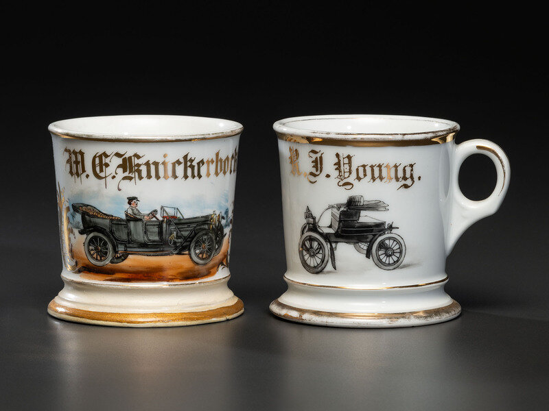 Two Automobile Porcelain Shaving Mugs