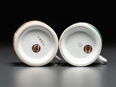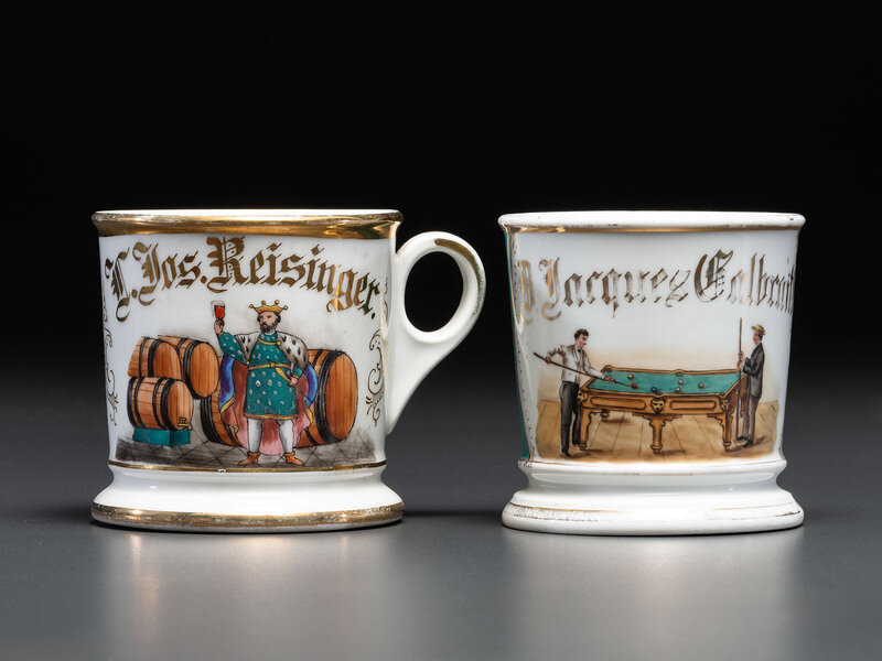 comprising a brewer's mug identified T. Jos. Reisinger, and a pool player's mug identified D. Jacques Galbraith.
